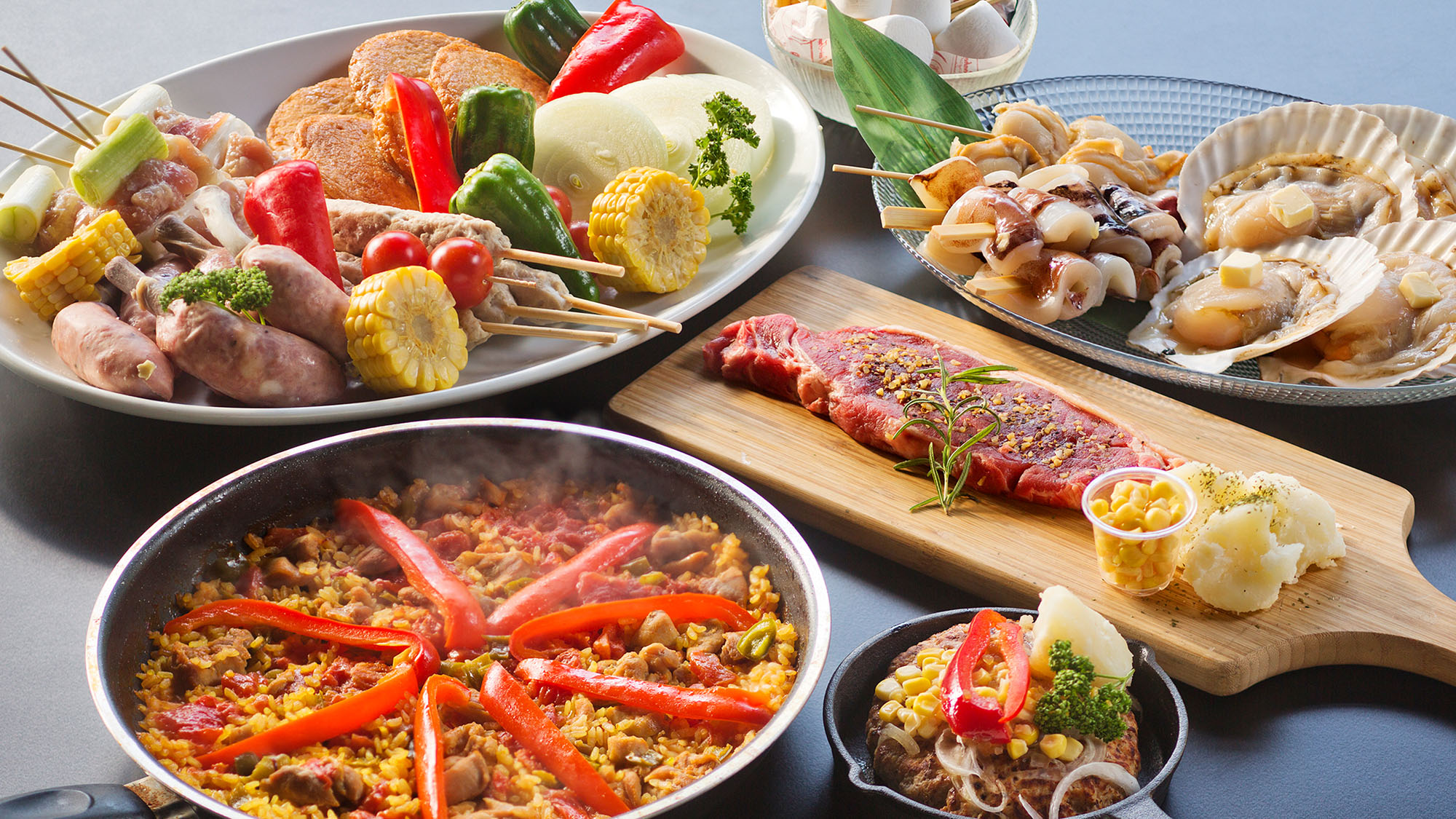 本格的なガスグリルで豪華なアメリカンバーベキューをお部屋内で楽しめて、更に誰でも調理できるように用意された手作りパエリアもついてきます🎵