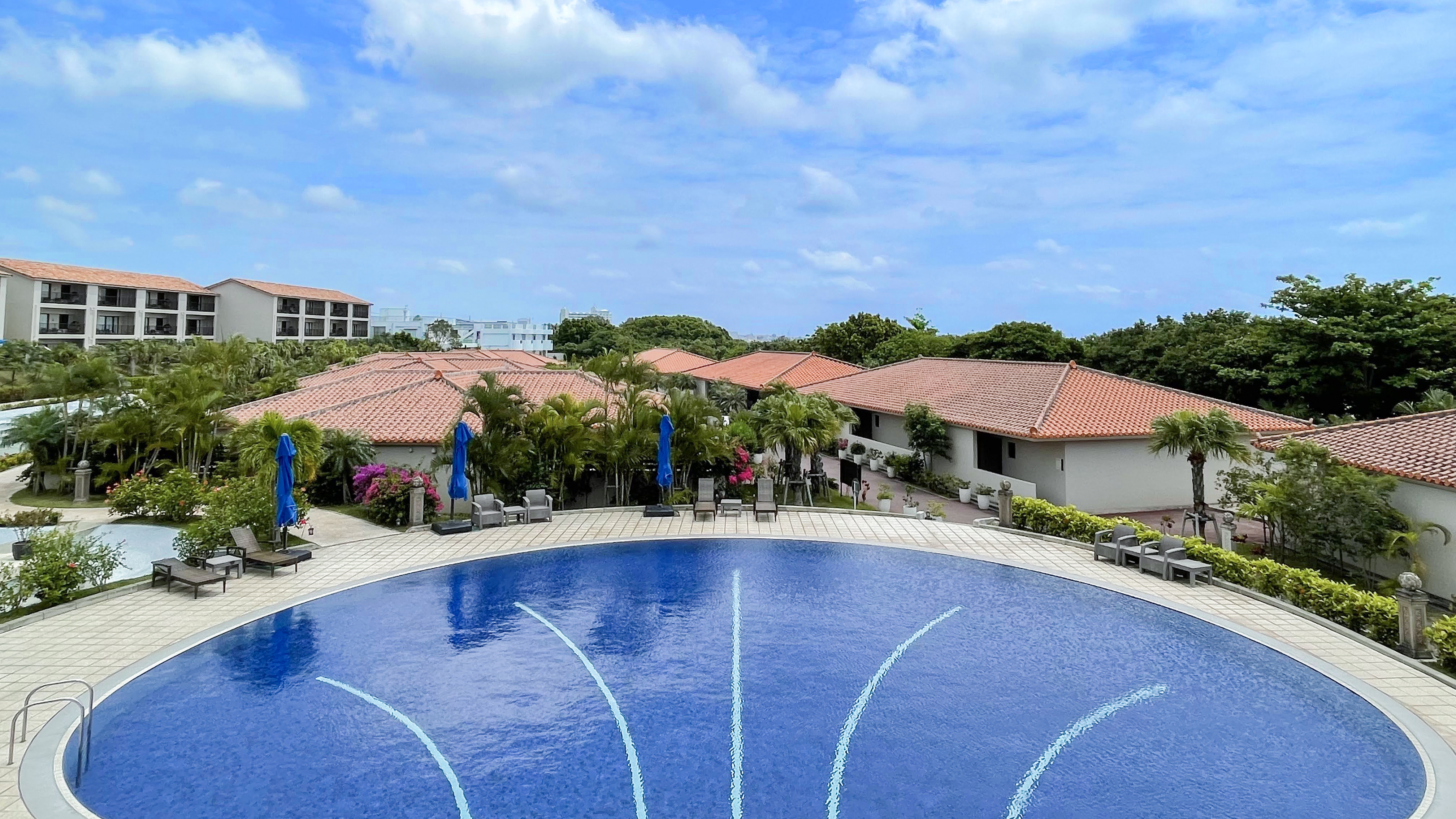 石垣島最大級のプールやインドアプールがあり、家族で楽しめます。ホテル棟のガーデンテラスには琉球畳を使用したリビングスペースもあります。