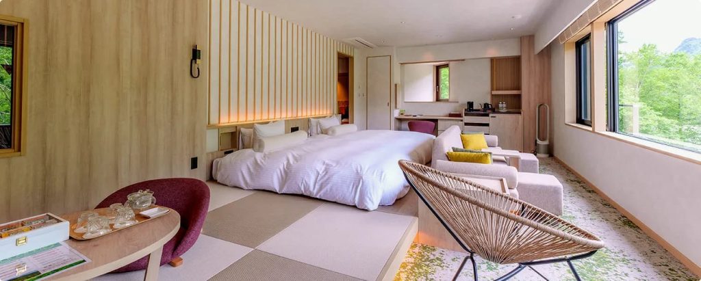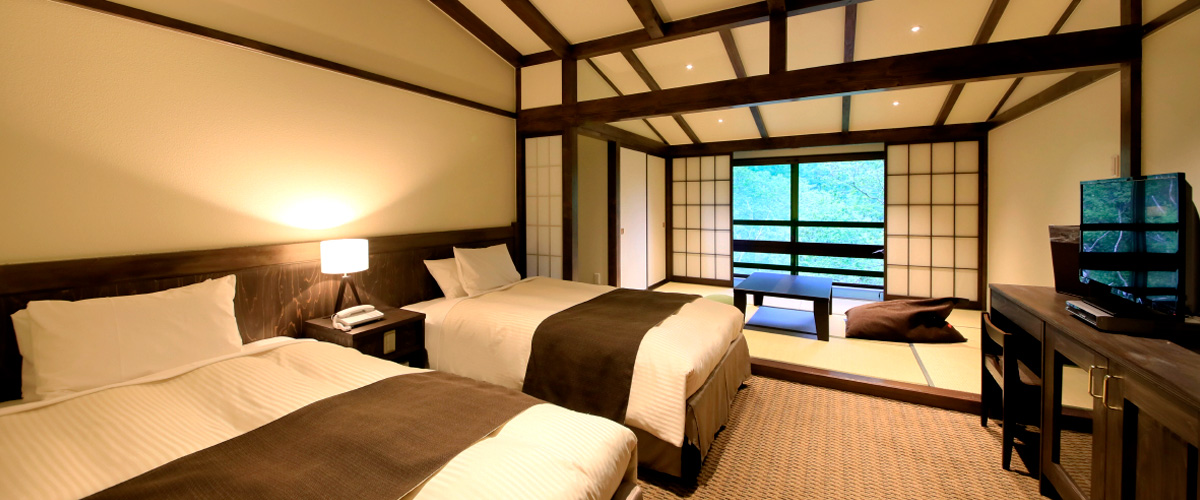 デラックスルームは広々としたお部屋で2〜5名まで利用可能で、家族旅行にもピッタリな広さです👍スーペリアツインは最大3名、スタンダードツインや和室もあり、家族構成に応じて選べます✨ほとんどお部屋が大正池側になるので、(一部山側有り)景色を楽しむことが出来ます。