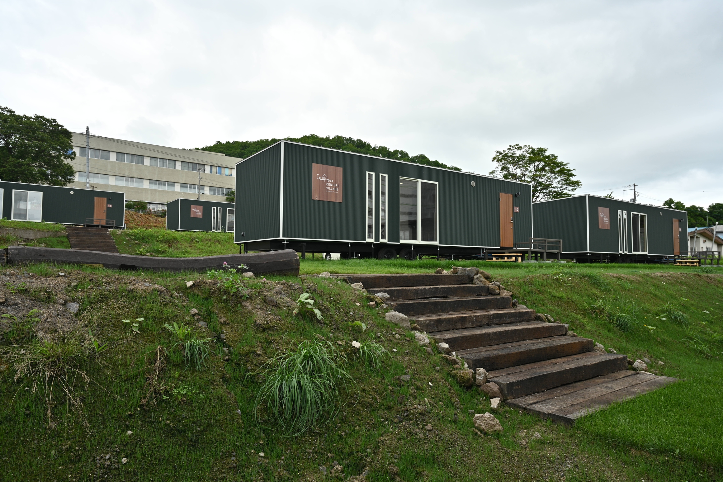 洞爺湖温泉街のすぐ近くにある「TOYA Center Village」は、トレーラーハウスの一棟貸しスタイルで滞在できるユニークな宿泊施設です。