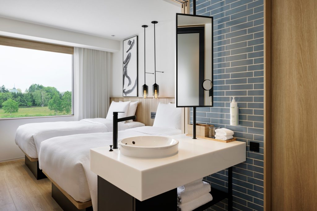 2022年にオープンした新しいホテルで、新千歳空港や札幌からのアクセスも良好。館内にレストランはないもののの、道の駅「花ロードえにわ」に隣接しているため、地元グルメや特産品が楽しめます。