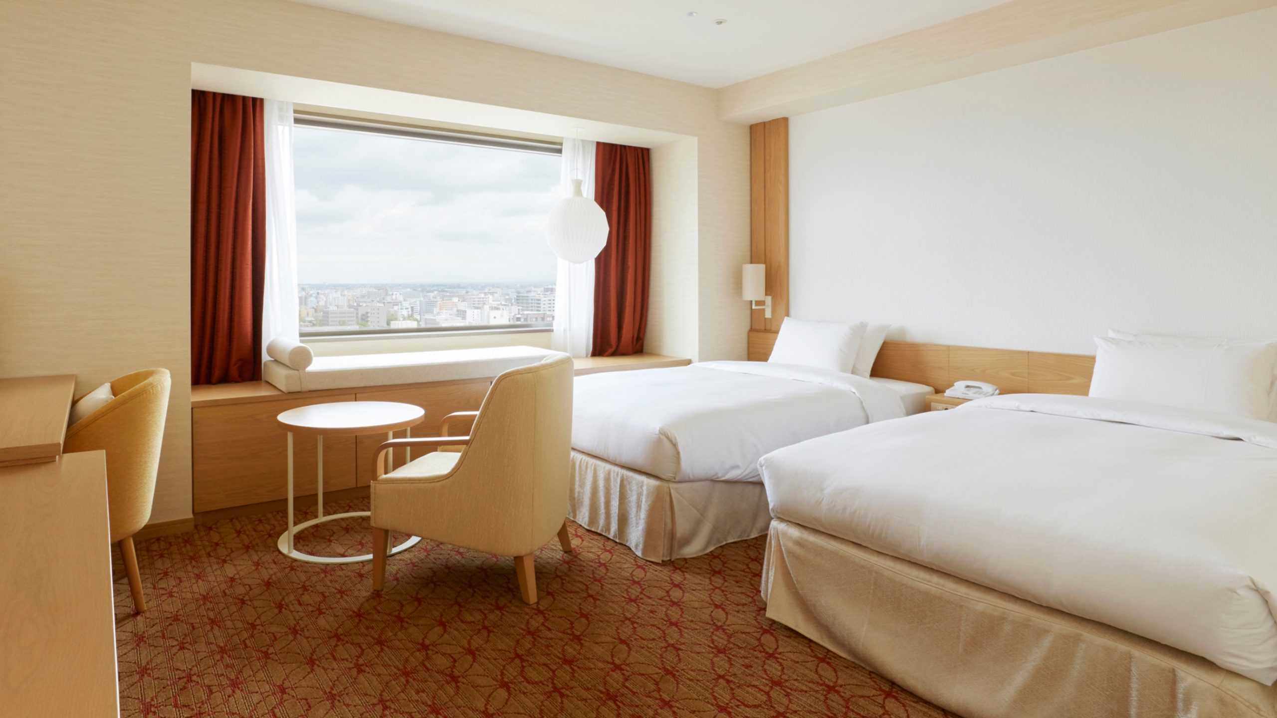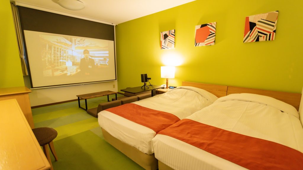 客室はツインやダブルのほか、和洋室もあり、ベッドに加えて布団を敷くこともできます。ツインのお部屋はバストイレ別の独立タイプで、子連れでも使いやすいのが嬉しいポイント。加湿空気清浄機などの設備も整っており、快適に過ごせます。