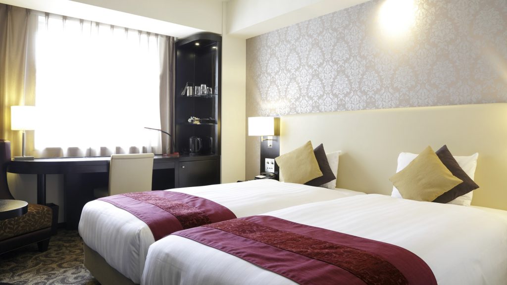 客室はツイン、ダブル、スイートまで幅広く、上層階からは札幌の夜景を一望できます。バストイレ一体型のお部屋が多いですが、館内には温泉大浴場や露天風呂もあり。広めの間取りでゆったり過ごせて子連れでもリフレッシュできます。