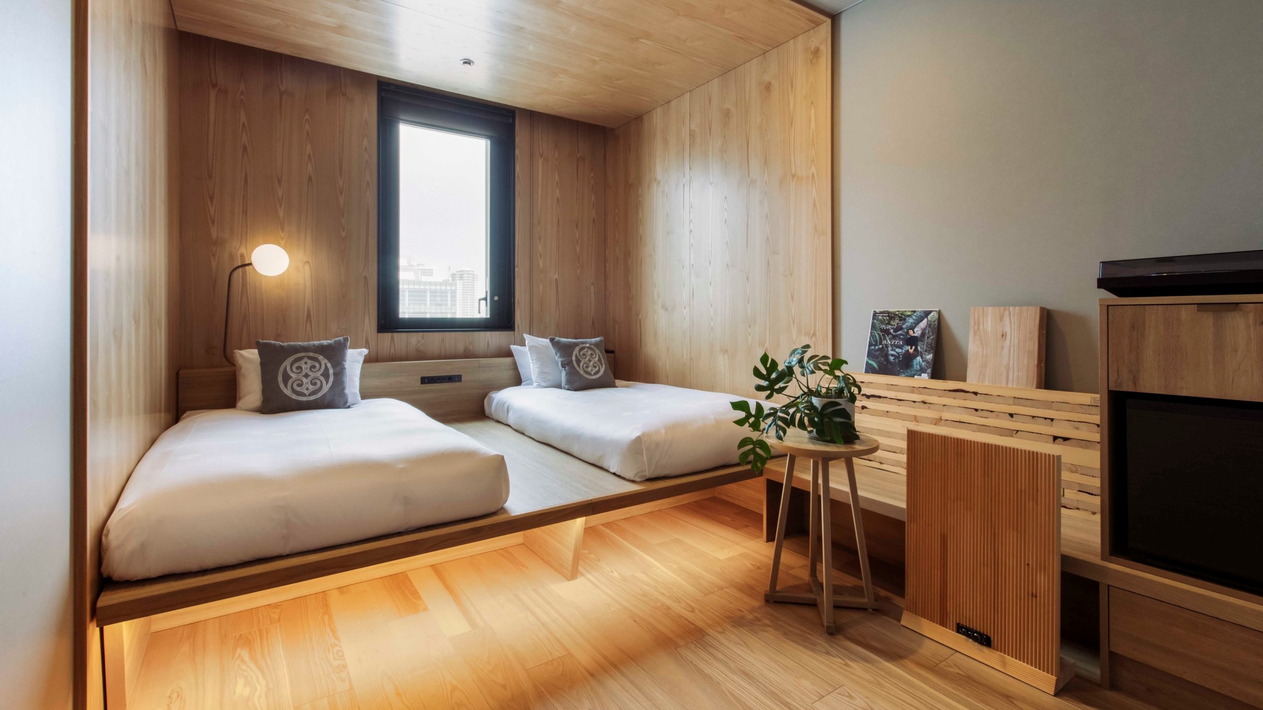 “デジタルデトックス”をコンセプトにした新感覚のホテル。あえて全客室にテレビを置かず、代わりにレコードプレーヤーとオリジナルウッドスピーカーを設置。心地よい音楽と木の香りに包まれながら、アナログな時間を楽しむことができます。