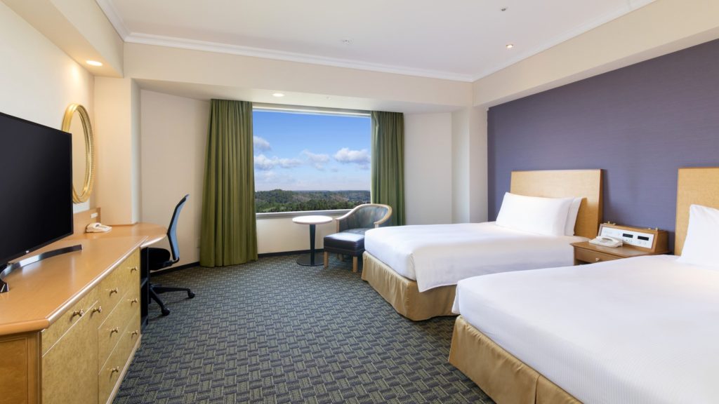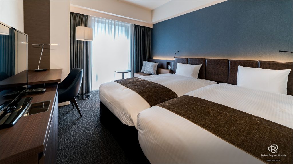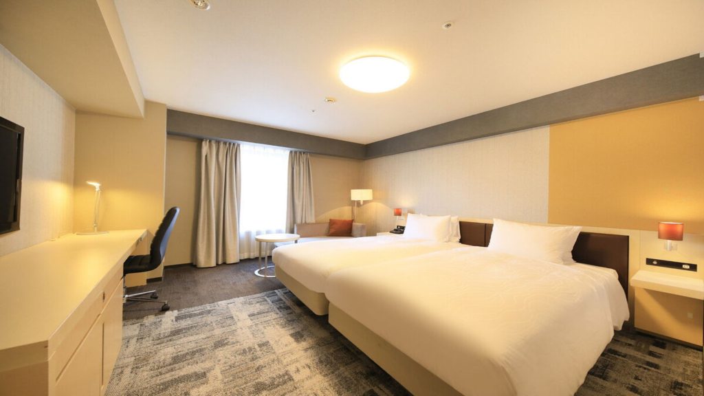 客室は25平米の広さがあるスタンダードツインや3~4台ベッドのファミリールームもあり。大人1名につき小学6年生以下のお子様1名まで添い寝無料で宿泊可能。