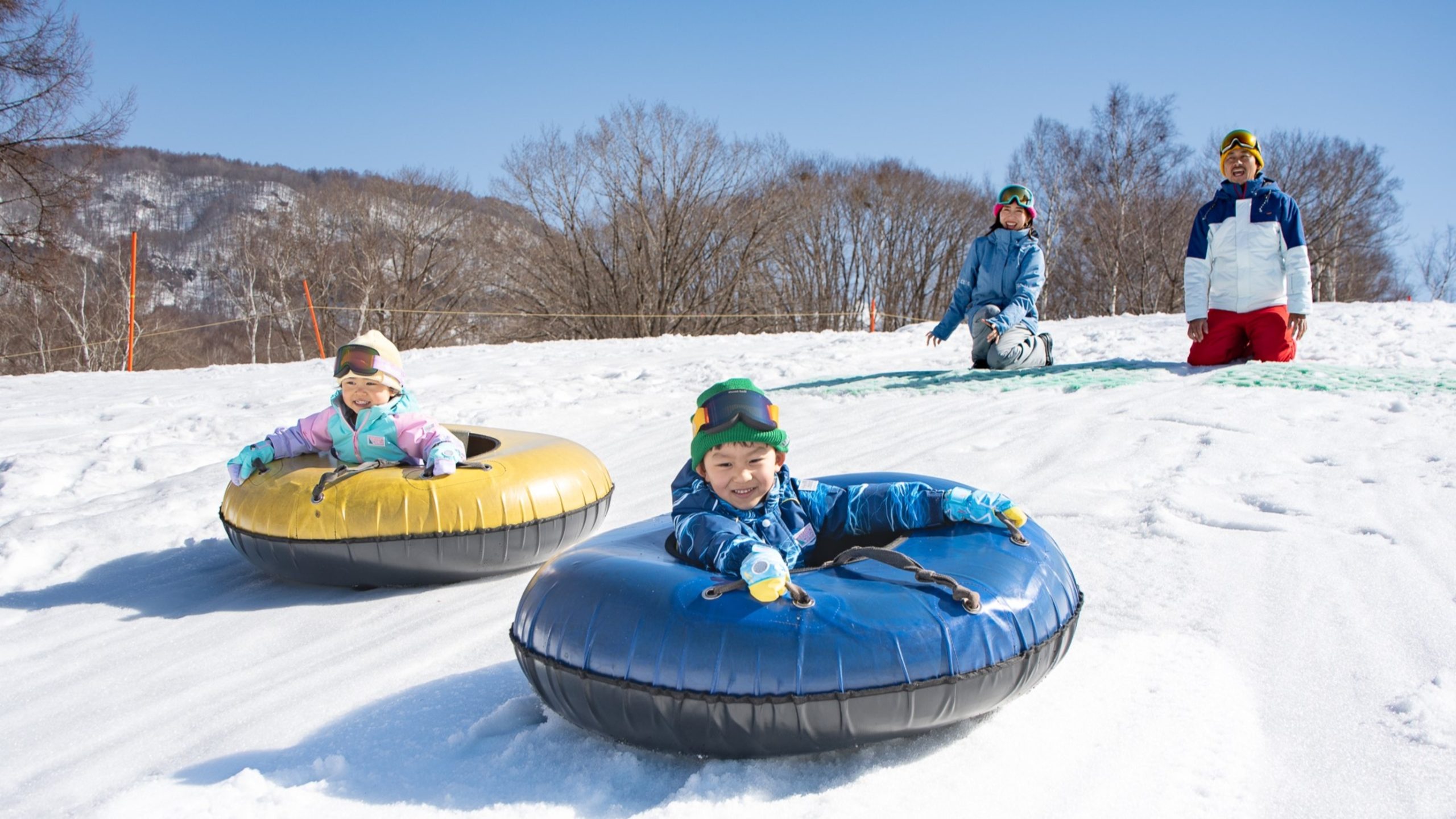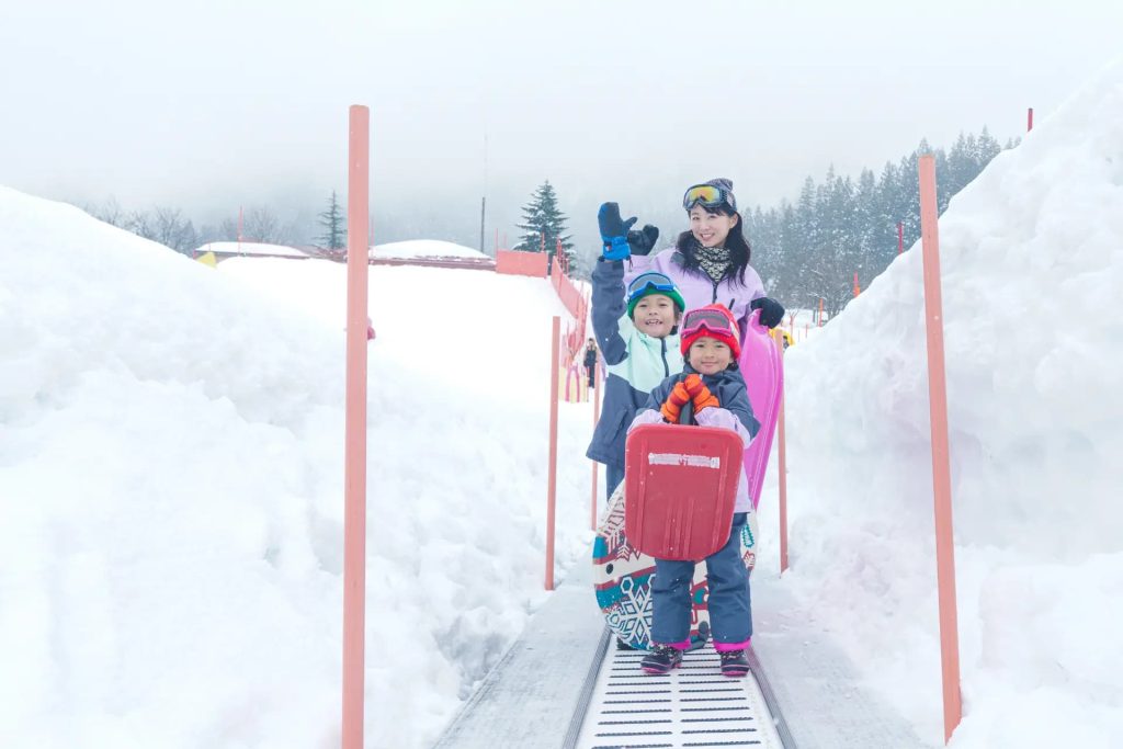 「Tube Park」内にはキッズ専用エリアがあり、ふわふわ遊具やそり遊び、スノーモービル試乗など子どもが喜ぶアクティビティが充実。スノーエスカレーター完備で移動もラクラクです。雪質は柔らかく転んでも安心。センターハウス2階には無料のキッズルームもあり、小さなお子様連れでも休憩しながら雪遊びが楽しめます☃️
