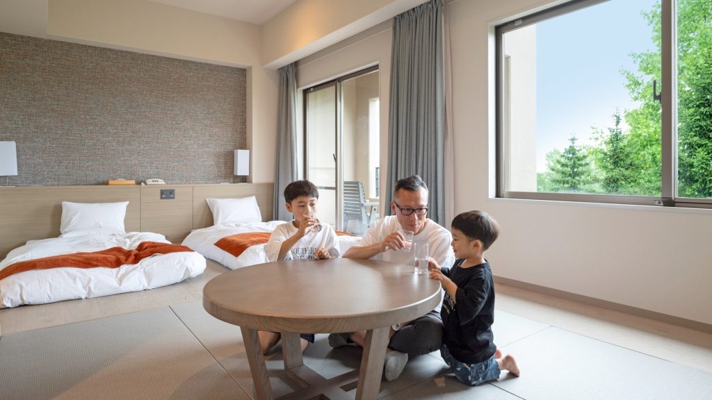 水上高原スキーリゾートに直結し、「ウェルカムベビーのお宿」に認定された水上高原ホテル200。200万坪の広大な敷地を誇り、赤ちゃん連れに安心の畳敷きベビールームや、キッズが喜ぶ客室も充実。ビュッフェにはキッズコーナーや離乳食も用意され、少ない荷物で安心して滞在できるファミリー向けリゾートです。