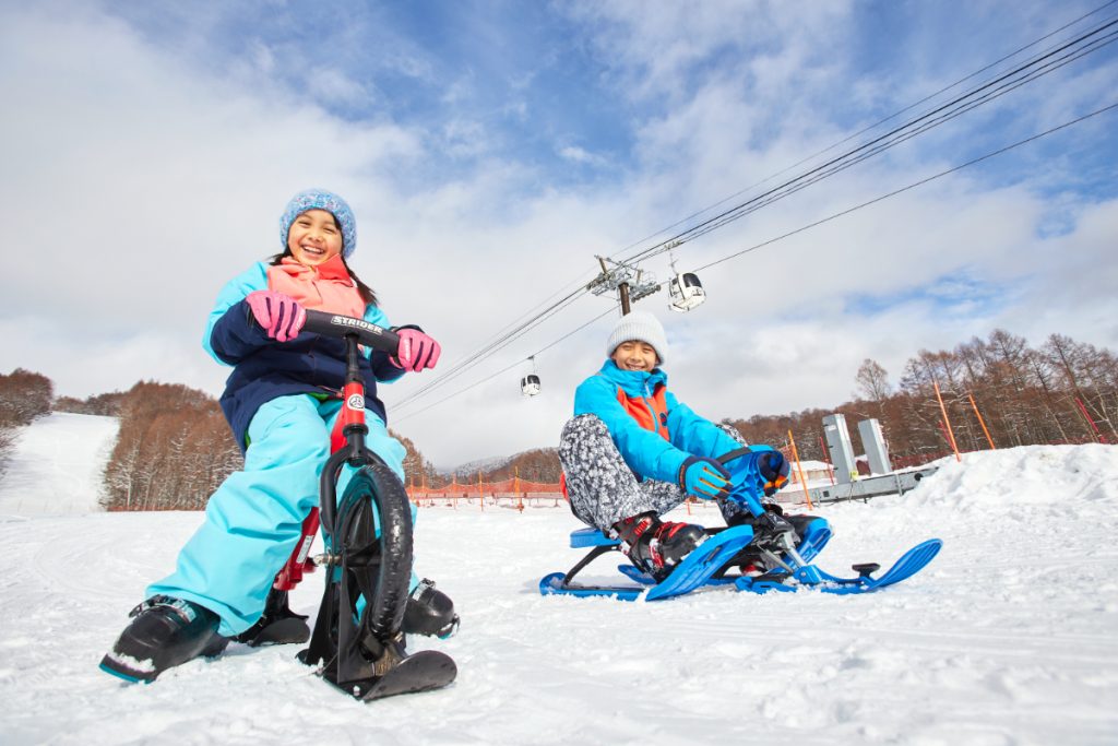 ゲレンデ内にあるファミリー専用エリア「サムライキッズパーク」では、緩やかな斜面のエリアと平らなエリアがあり、それぞれにチュービング、そり、ミニボブスレー、ストライダーなど自由に遊べる道具がたくさん準備されています❣️