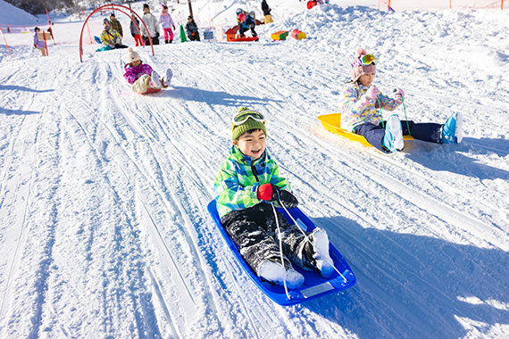 そり遊びや雪遊びエリアが整備され、小さな子どもでも安心して雪遊びを満喫できます。またバナナボートや雪像造りなども体験できますよ🎵(別料金)