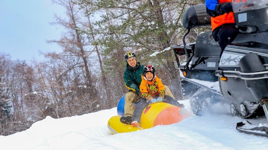 小さな子どもから大人まで、そりやチューブで雪遊びを楽しめるエリア。安全に配慮された設計で、初めての雪遊びにもぴったりです。他にもスノーモービルやバナナボートなどスリルいっぱいのアクティビティもありますよ🎵(別料金)