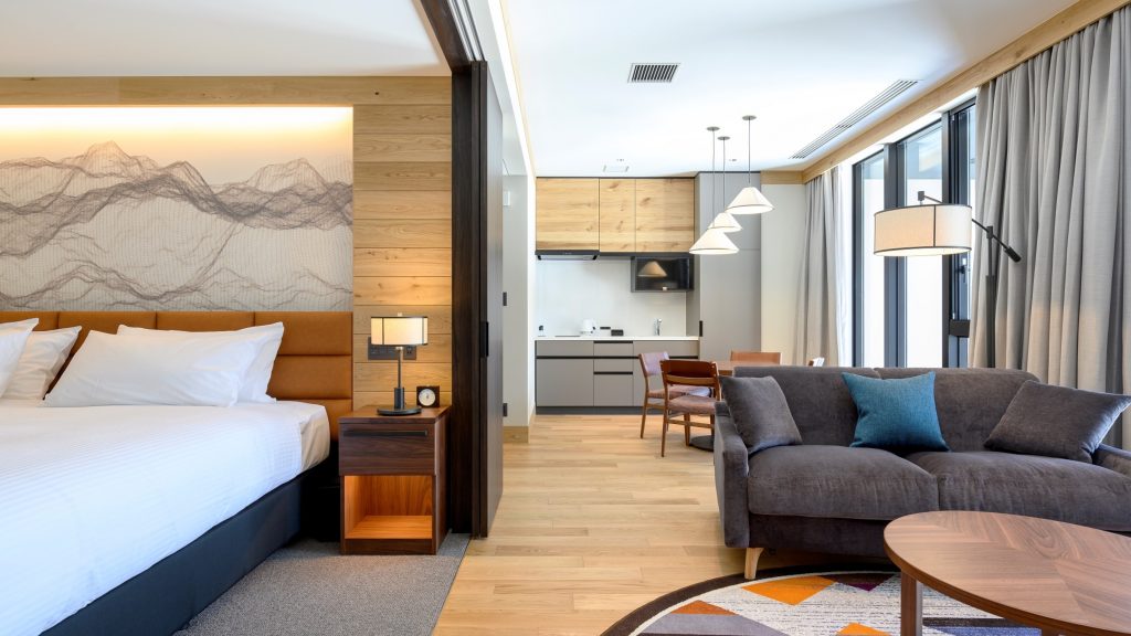 札幌市内から約60分とアクセス良好な「キロロスノーワールド」(北海道 赤井川村)。「ゆうキロロ」はキロロスノーワールド直結のスキーイン・スキーアウトホテル。全室スイート仕様で、温かみあるスタイリッシュな空間が魅力。キッチン付きでコンドミニアムタイプのホテルです。温泉大浴場やジム、キッズスペースも完備し、家族連れでも快適に過ごせます♡