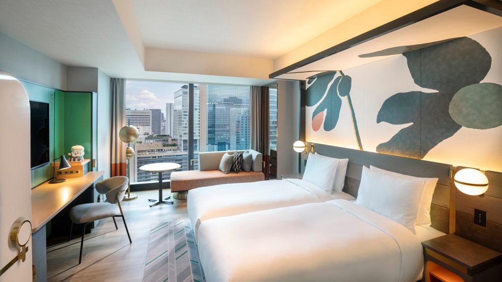 グラングリーン大阪・北街区ノースタワーに位置する、ヒルトンのライフスタイルホテル。客室は13〜25階にあり、うめきた公園や淀川を望む開放的な眺望が魅力です✨世界各国の料理を楽しめるオールデイダイニングや、洗練されたストリートフードを提供するバー&ラウンジ、公園に面したカフェではオリジナルローストコーヒーも堪能できます。12歳以下の添い寝無料、犬と一緒に滞在できるお部屋もあります🐕