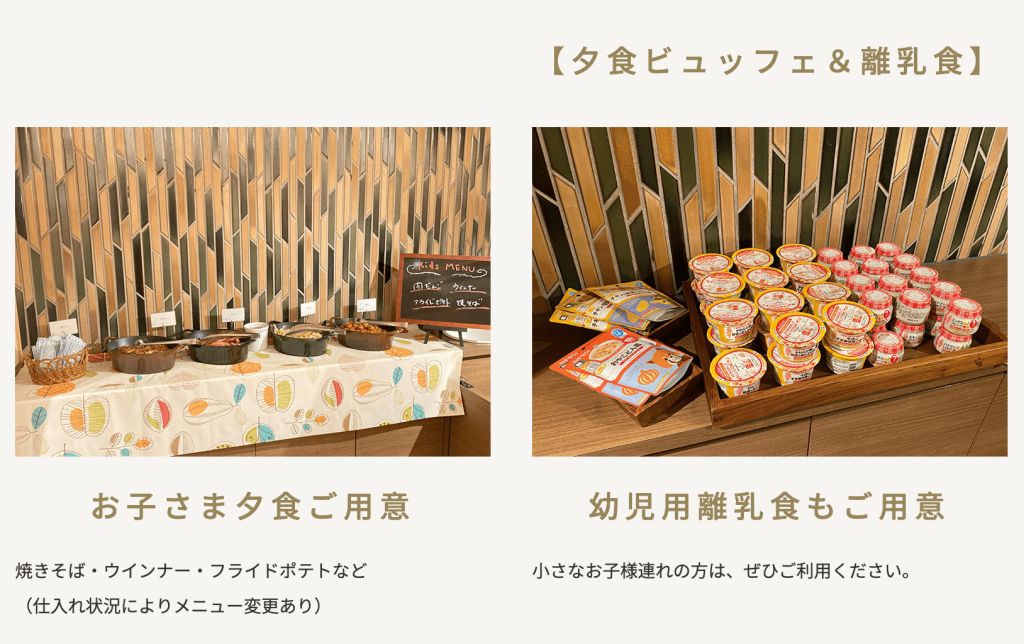 口コミでも「子どもが大好きなメニューが多く助かった」「離乳食対応がありがたかった」との声が寄せられています。