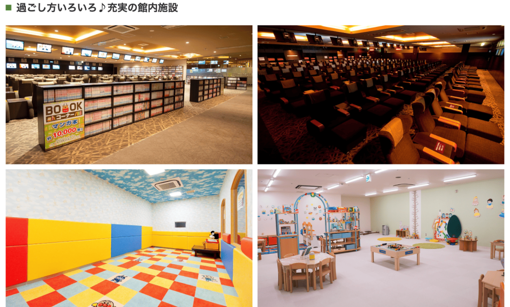 さらに、託児所「すこやかハウス」では、入浴中に子どもを預けることができ、パパママがほっと一息つける時間も確保できます。