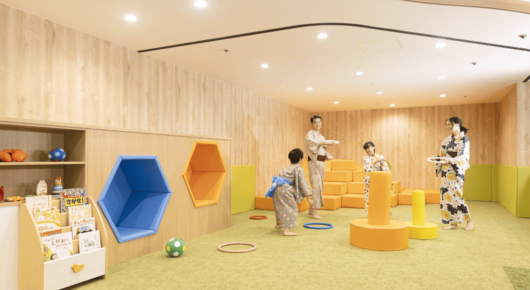 屋内だから雨でも安心!チェックイン後やお風呂前に子どもを思いっきり遊ばせられるのは、ママパパにとっても大助かり。
