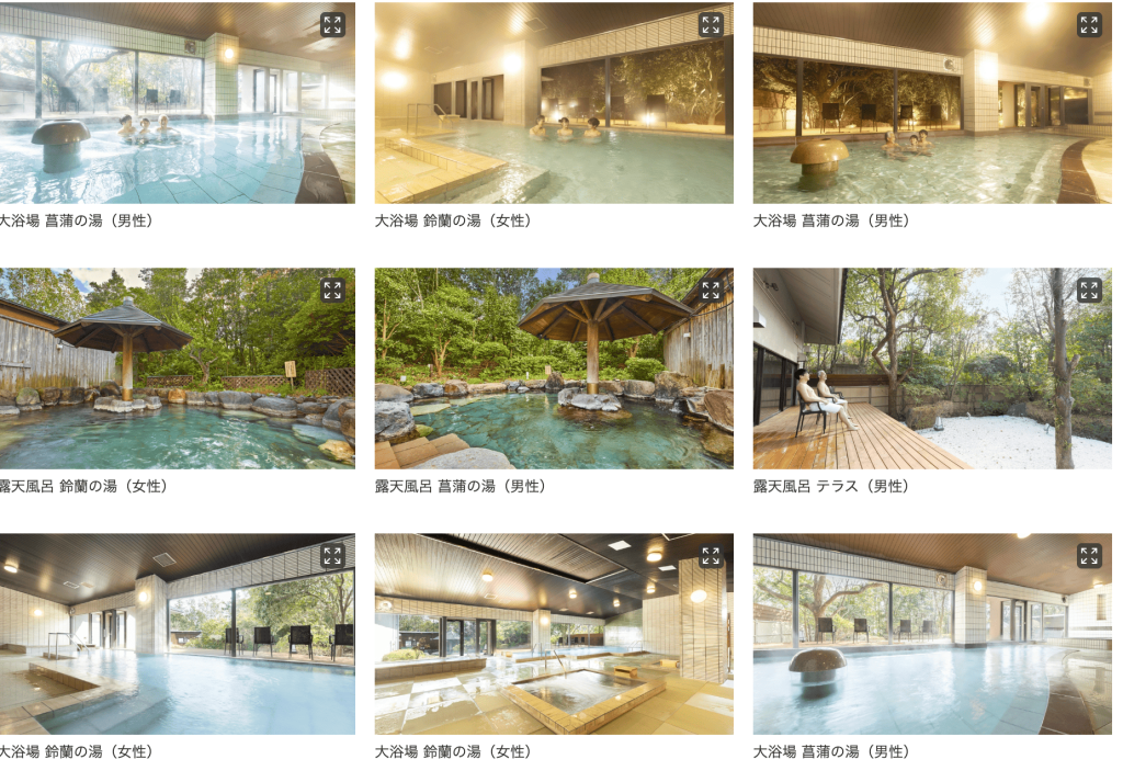 - 開放感のある大浴場と森に包まれる露天風呂