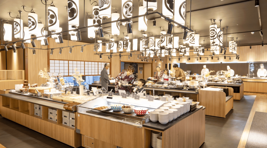 会場は広々としており、落ち着いた雰囲気の中でゆっくり食事ができるのも魅力。温泉でリフレッシュしたあとの食事は、旅の楽しみをさらに高めてくれます。