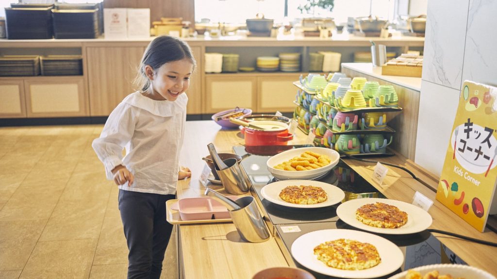 ホテル内にあるビュッフェレストランでは、栄養バランスを考えた子供向け料理が10種類以上用意されています。