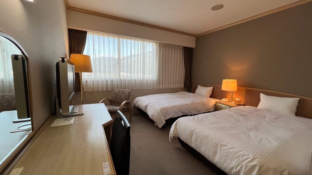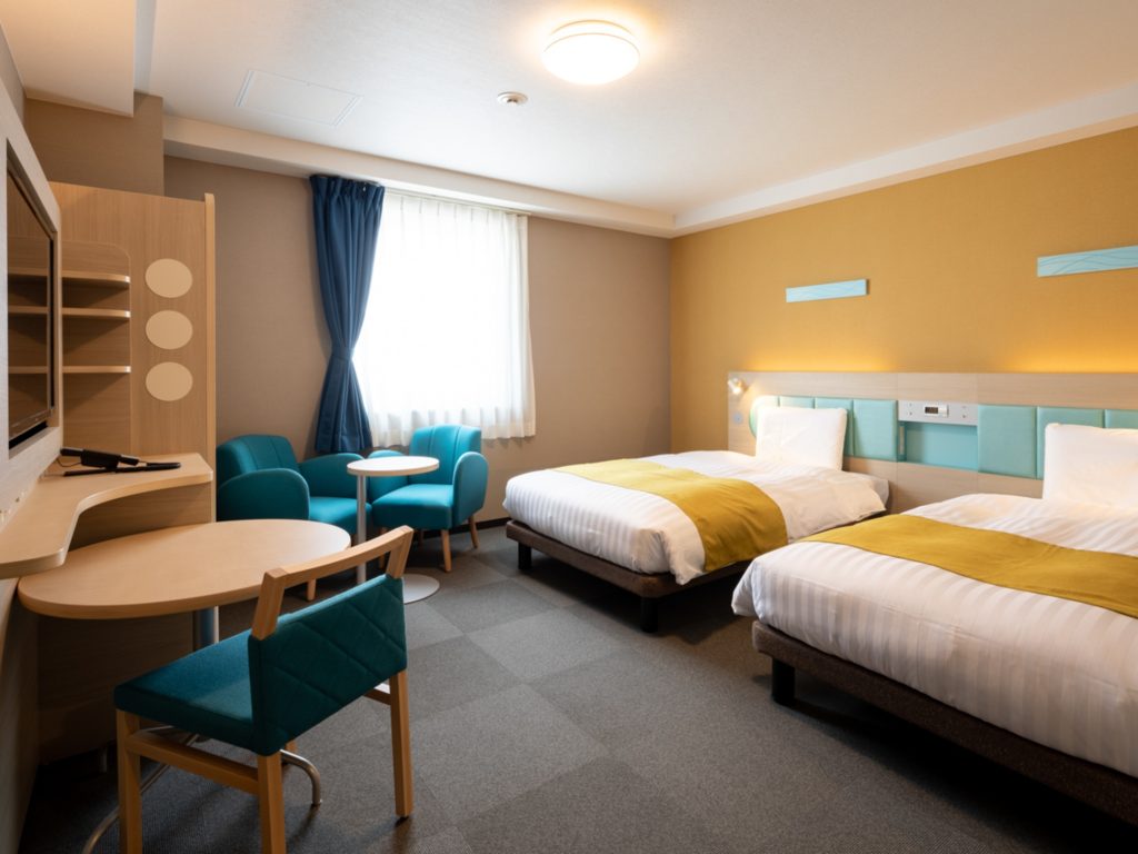 JR徳島駅から徒歩15分、コンビニも近くて便利な立地です。阿波踊り会館や大塚国際美術館、眉山観光にもアクセスしやすく、家族での観光拠点にぴったり❣️デラックスツインの客室は広めのベッドでゆったりくつろげ、子どもとの添い寝利用にも◎。公式サイトには小学生以下添い寝無料とありますが、各種予約サイトでは未就学児のみ、となっている場合もあるため、ご注意ください。