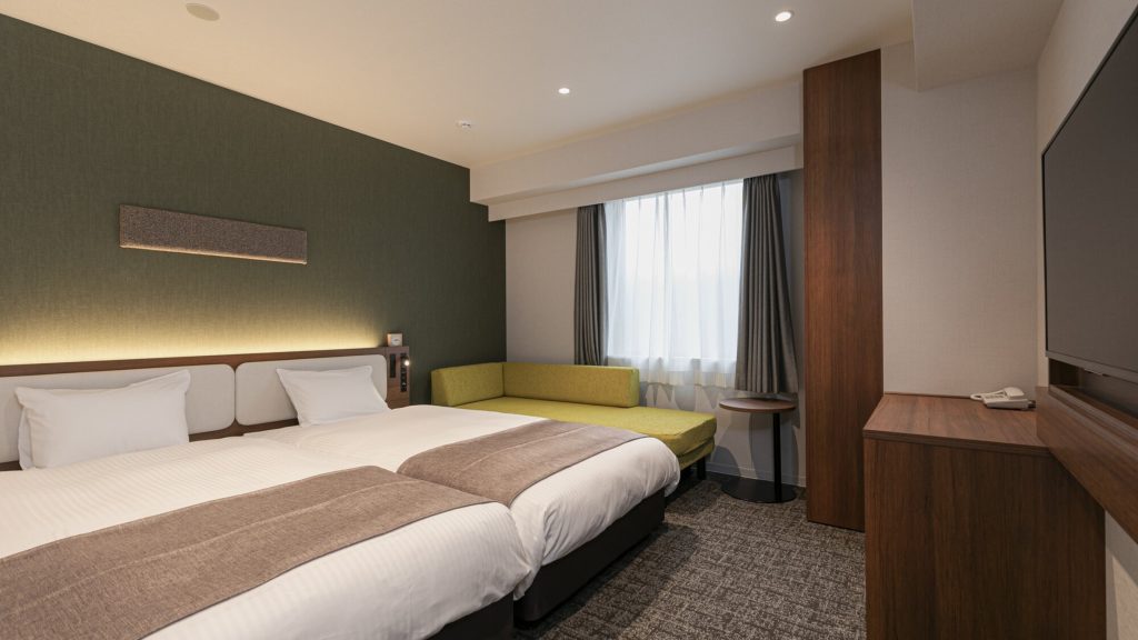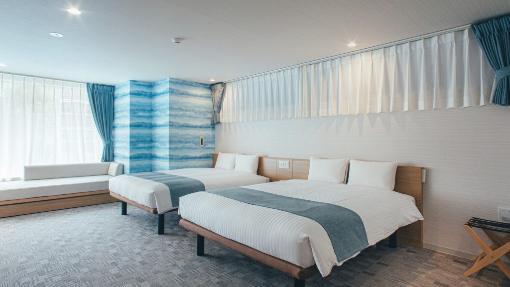 駅や空港リムジンバス乗り場から近く、移動に便利な立地。広々としたラウンジでは高速Wi-Fiが利用でき、ワーケーションにも最適です。日本最長の高松商店街へも徒歩約2分で、地元グルメ散策も楽しめます。ツイン・ダブルに加え最大6名まで泊まれる客室もあり、12歳以下の添い寝無料で子連れにも安心です。