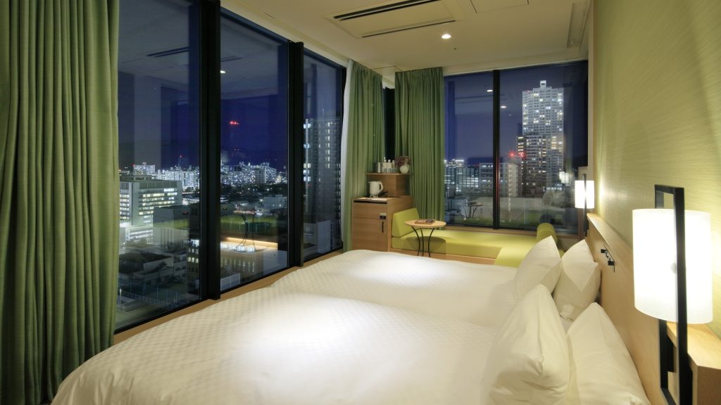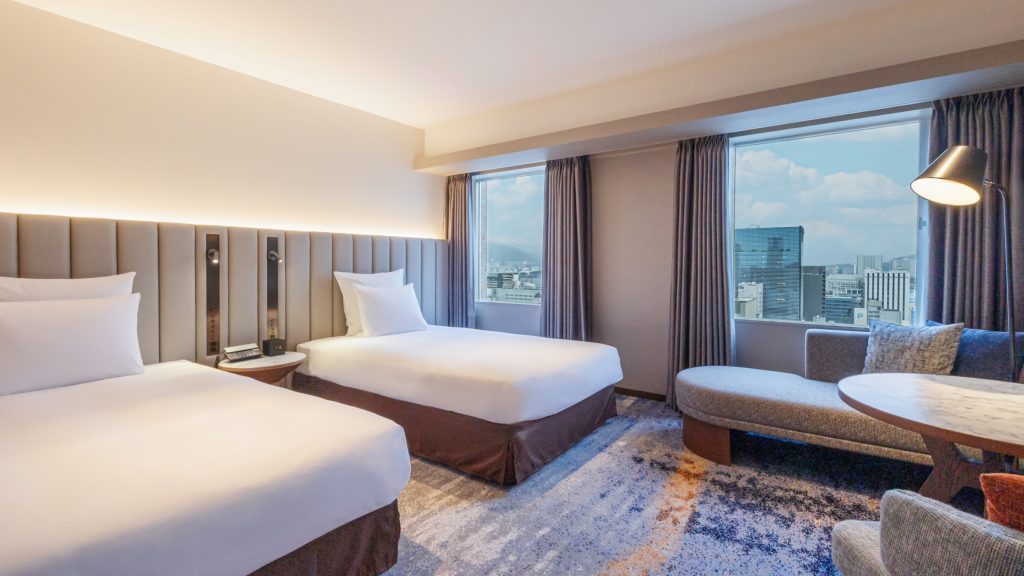 広島の街並みや宮島、瀬戸内の島々を一望できます。18歳以上の宿泊者は、館内にある「ANYTIME FITNESS」も無料で利用できます🤗