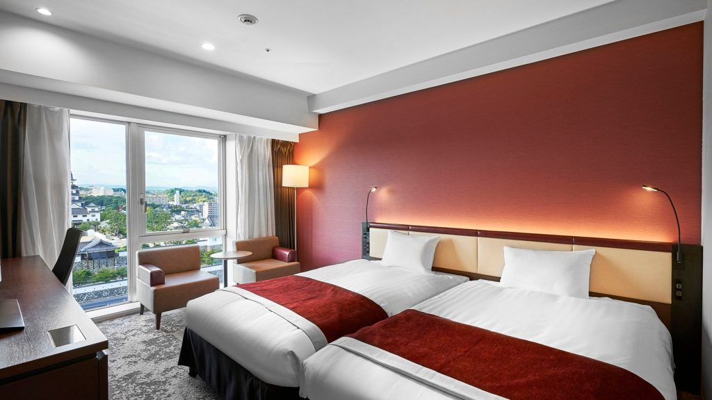 JR福山駅から徒歩1分、新幹線利用にも便利な好立地なホテル。福山城公園の近くにあり、観光の拠点にもぴったりです。全191室はバス・トイレ別のセパレートタイプで子連れでも快適。10階以上のキャッスルビュー客室では福山城の美しい景色を楽しめられますよ🤗。ツインやフォースなど、お部屋の種類も豊富です。