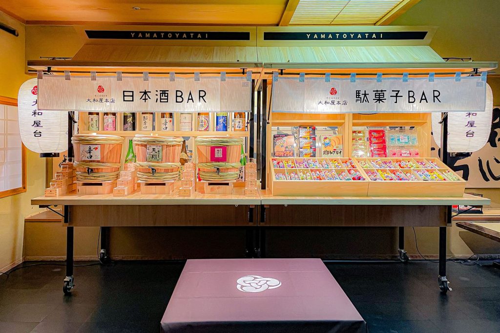 湯上がり処「大和屋台」では、無料で日本酒BARと駄菓子BARが楽しめます🍶