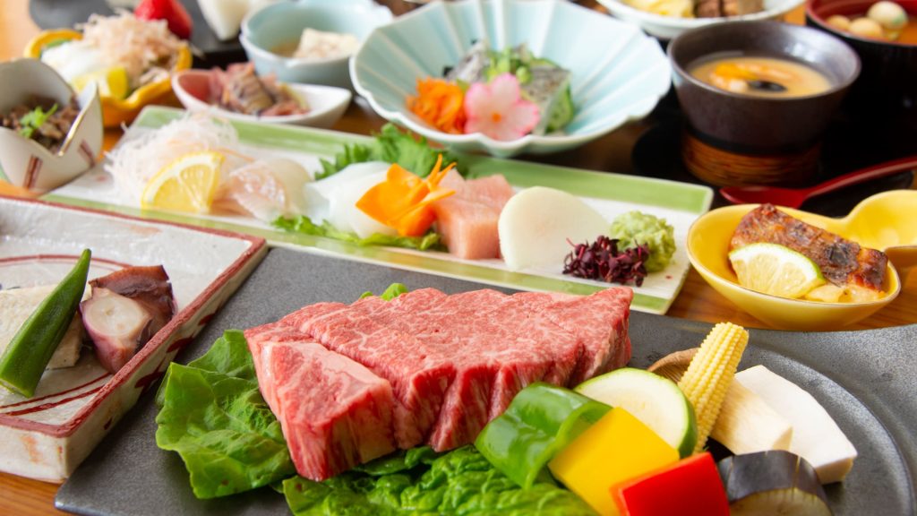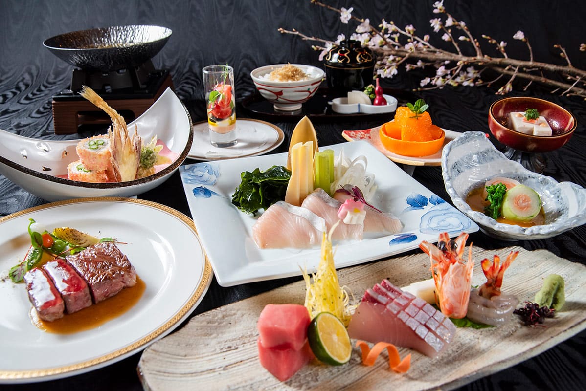 お料理は神戸牛や瀬戸内の海の幸を使った会席料理で、季節の味覚を堪能できます。