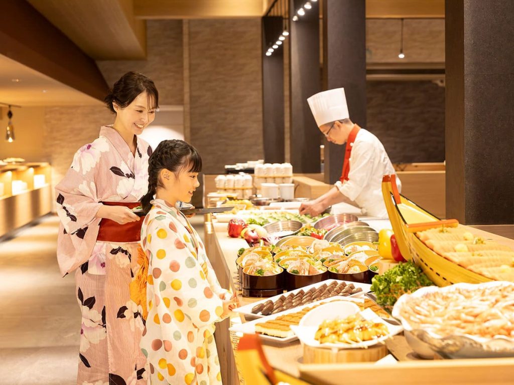 特に人気なのが刺身や天ぷら、ステーキ。マグロの解体ショーやカニ食べ放題などのイベントが開催されることもあり、子どもたちも大興奮!家族それぞれが好きなものを選べるので、食事の時間も楽しいひとときに✨