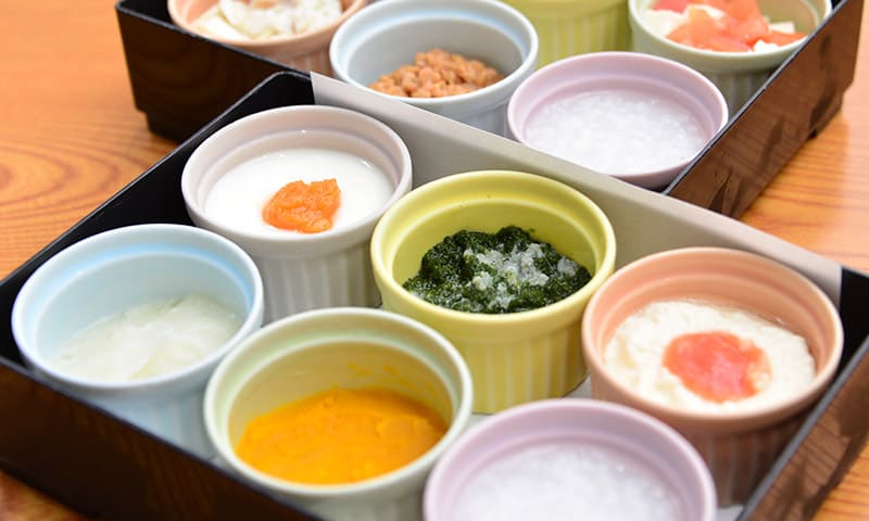 赤ちゃんにも旅行を楽しんでもらいたいという想いから、6種類のメニューを御膳風に丁寧に盛り付けた離乳食を用意してくれます。