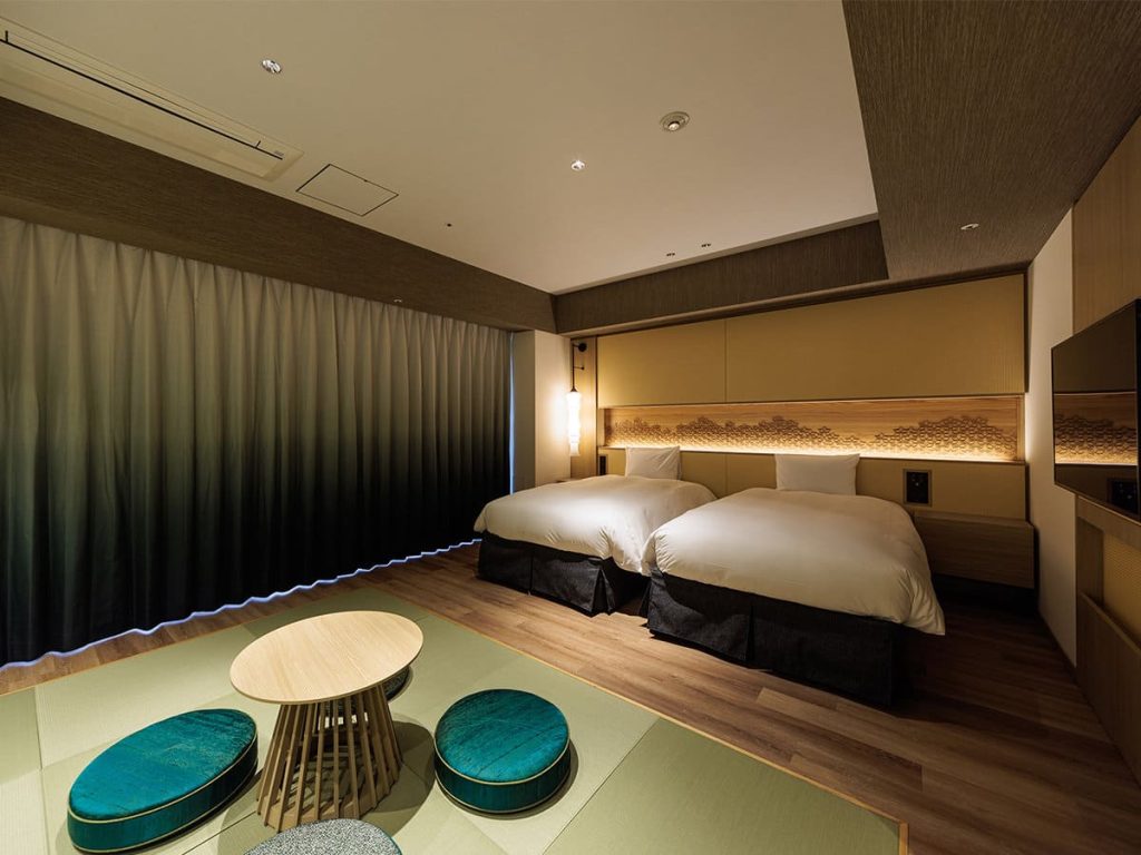 2025年1月にオープンしたばかりの「星館」では温泉旅館の風情を感じることができ、木の温もりがある温かみのあるお部屋です。
