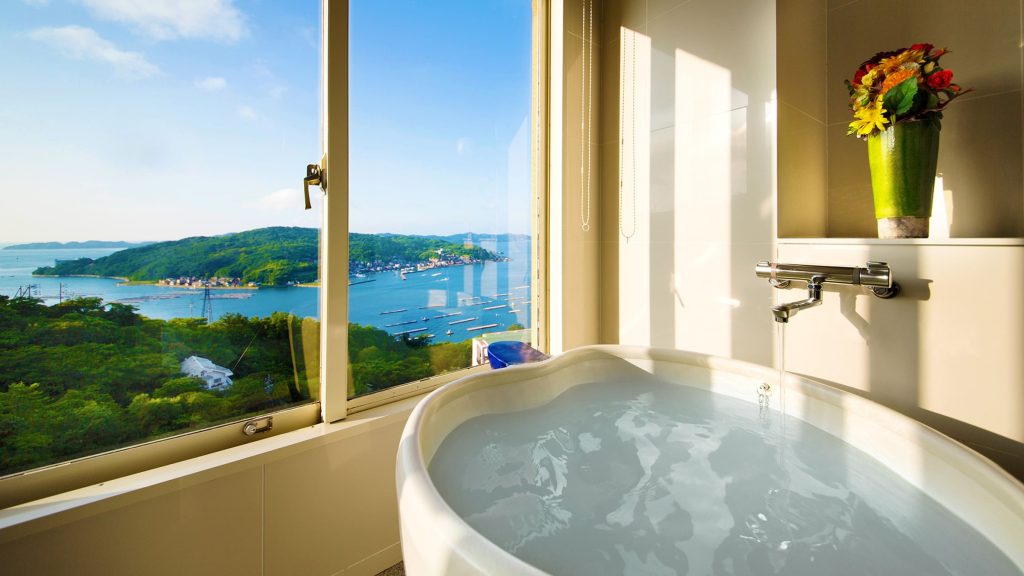 鳥羽湾を一望できる高台に佇む「鳥羽ビューホテル花真珠」。SNSでも話題になり、子連れファミリーに圧倒的な人気を誇る温泉宿です✨ 全室オーシャンビューで冬の伊勢志摩旅行が特別な思い出になります🙌